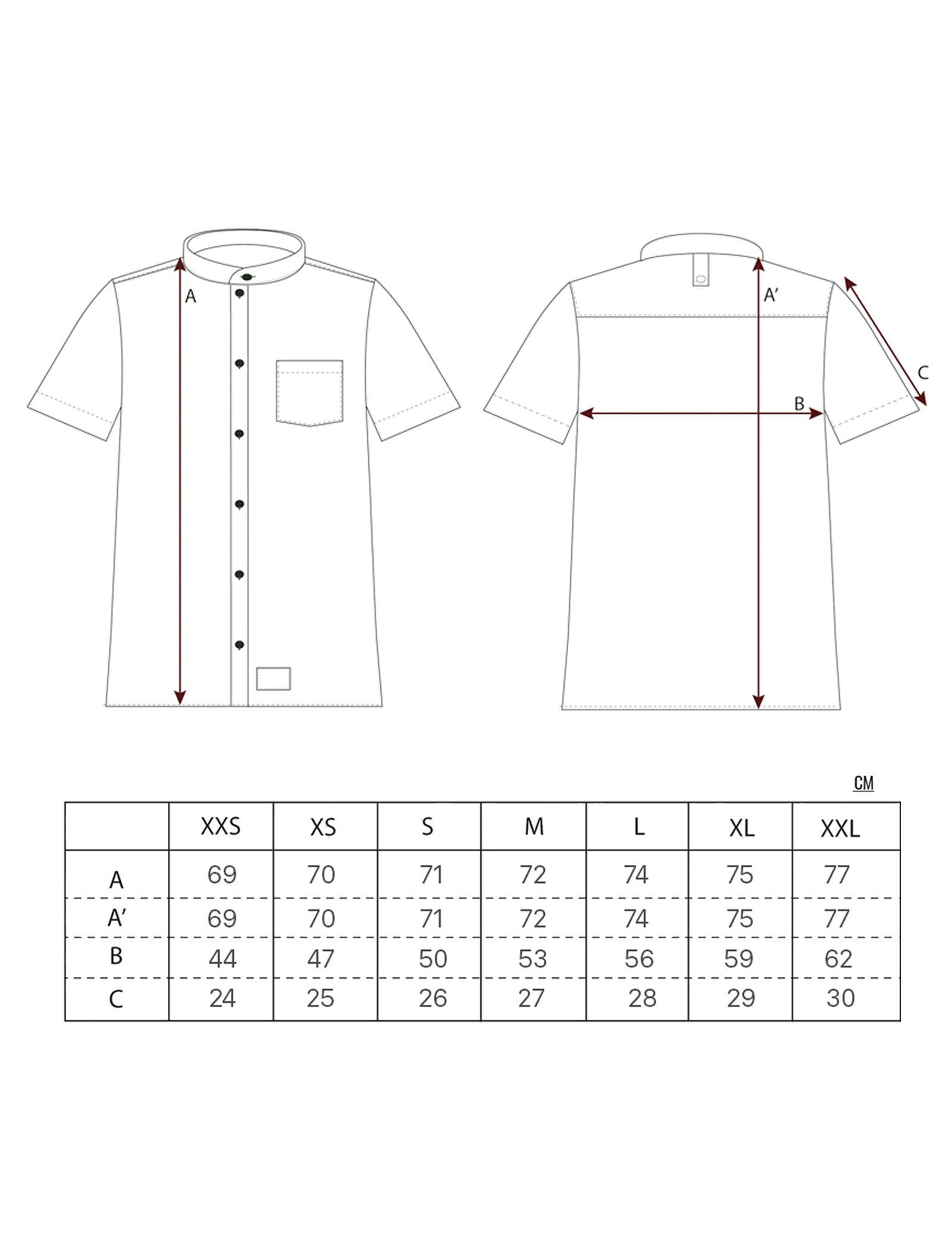 Su diseño presenta un cuello mao cruzado, un elegante guiño a la sastrería tradicional reinterpretado con un corte moderno y funcional. Cuenta con fuelles traseros y tejido técnico elástico, para favorecer la comodidad y libertad de movimiento. Tejido transpirable gracias a su base mayoritaria de algodón, y resistente para aguantar el servicio más duro.