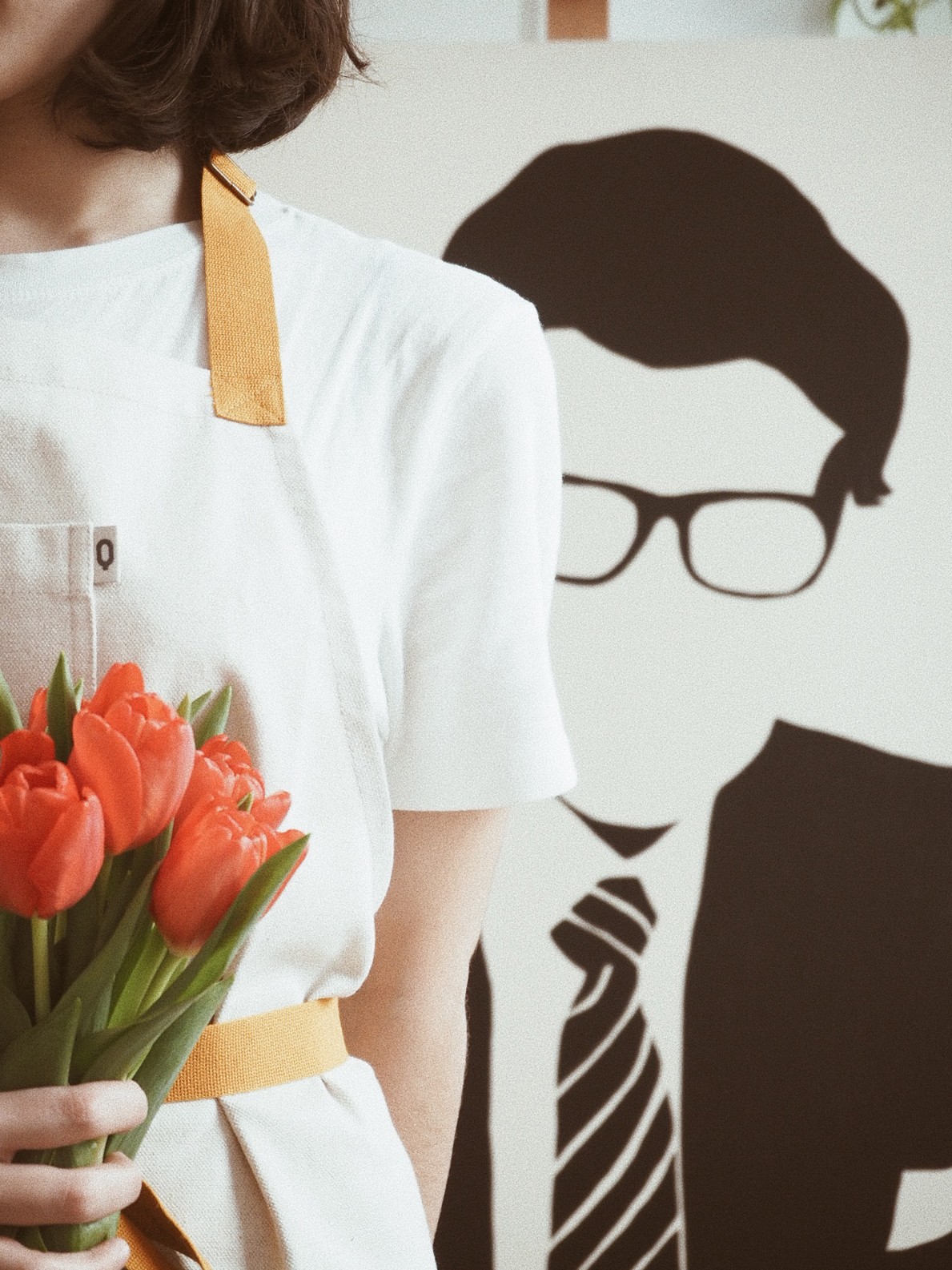 In our collection, the florist’s apron has been carefully created to meet all the needs of the profession. Classic cuts with modern, refreshing accents to give them a unique personality. Want to hear more?