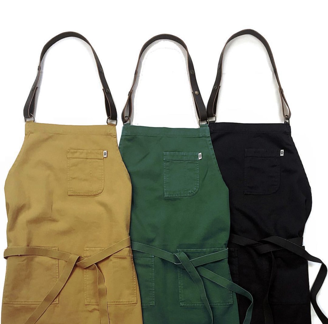 Our collection of artisan dyed denim aprons.